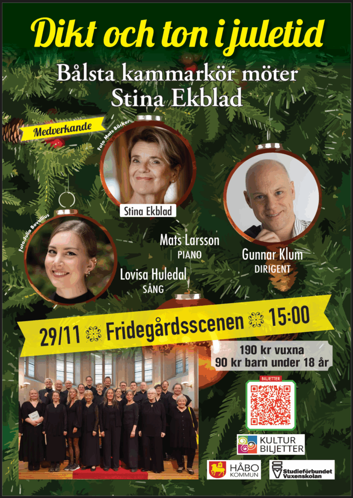 29/11 Kl 1500 Julkonsert i Fridegårdsaulan, Bålsta.